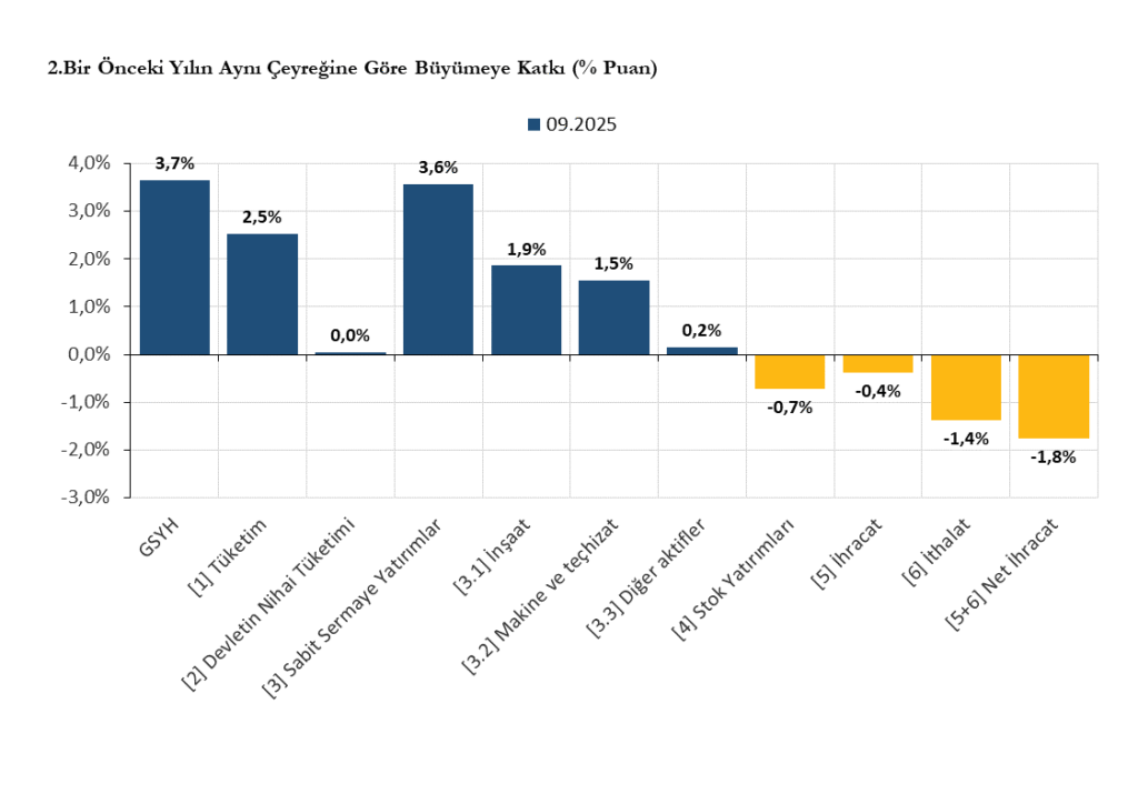 2025 yılının üçüncü çeyreğinde ekonomik büyümenin kaynağı tüketim değil, yatırım harcamalarıdır.